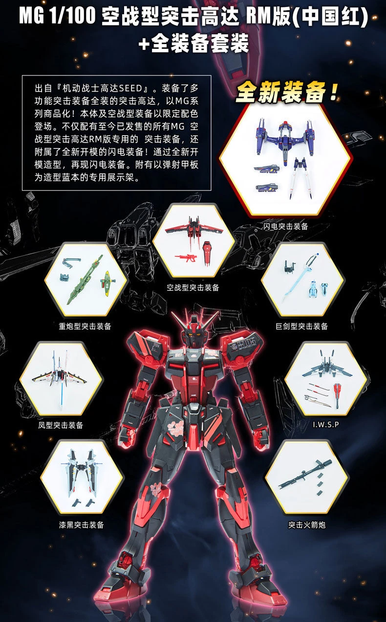 Bandai Gundam 1/100 MG Seed Aile Strike Gundam Ver. RM (Chine Red Color + Full Pack Set) Model Kit