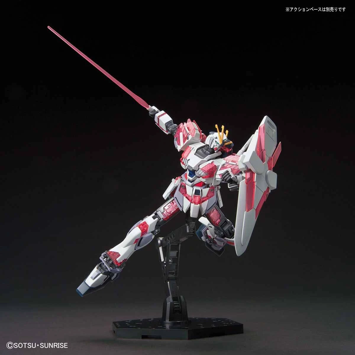 Narrative Gundam’s clear parts allow the recreation of the psycho-frame equipment reminiscent of the Gundam Unicorn. Use the different stickers to recreate the red Beserker Mode from the movie!