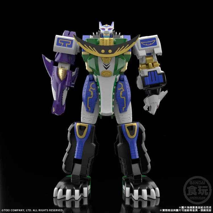 Add this GaoHunter from Hyakuju Sentai Gaoranger set to your collection! This set is part of the SMP, Shokugan Modeling Project, figure line. The GaoHunter combines three Power Animals — a wolf, a hammerhead shark, and an alligator — to create a mighty figure.Â