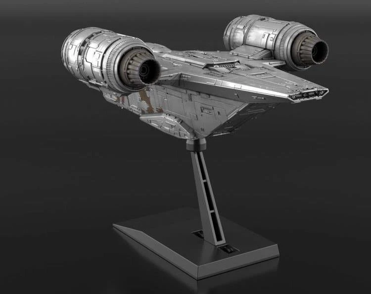 Add to your The Mandalorian collection with this model kit of the Razor Crest! Once complete, this painted model features amazing accuracy to the ship owned by Din Djarin on the TV series. The included stand also features a ball joint for optimal display, a great item for fans of all things Star Wars! This version is silver coated to reproduce the heavy texture of the aircraft.
