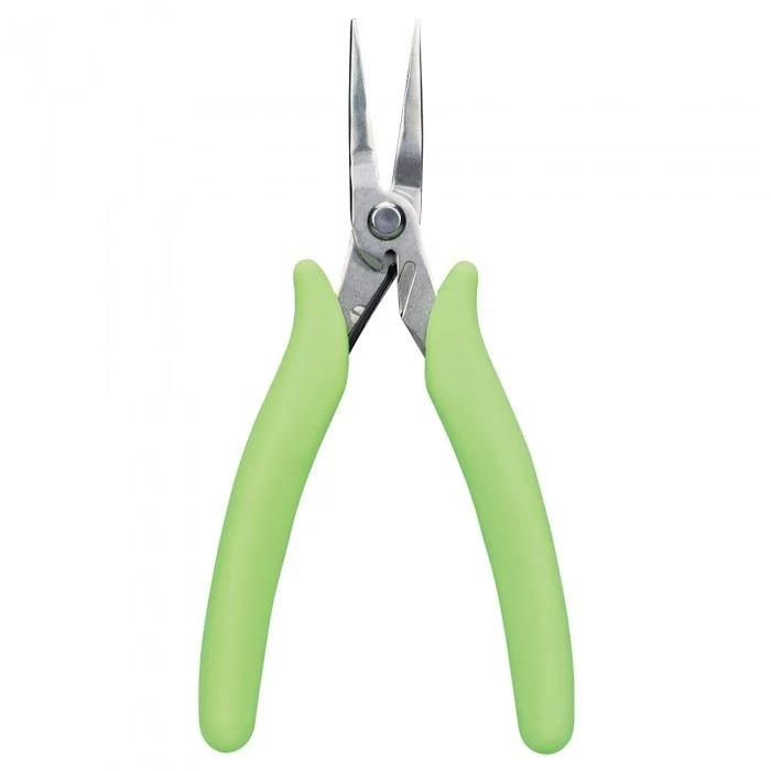 Le-Dio pliers are pliers designed to combine the functionality of needle-nose and flat-nose pliers. Le-Dio pliers have a tapered straight blade that lets you handle parts intuitively. The holding area of the pliers are engraved to hold small parts firmly. Great for bending tiny parts.