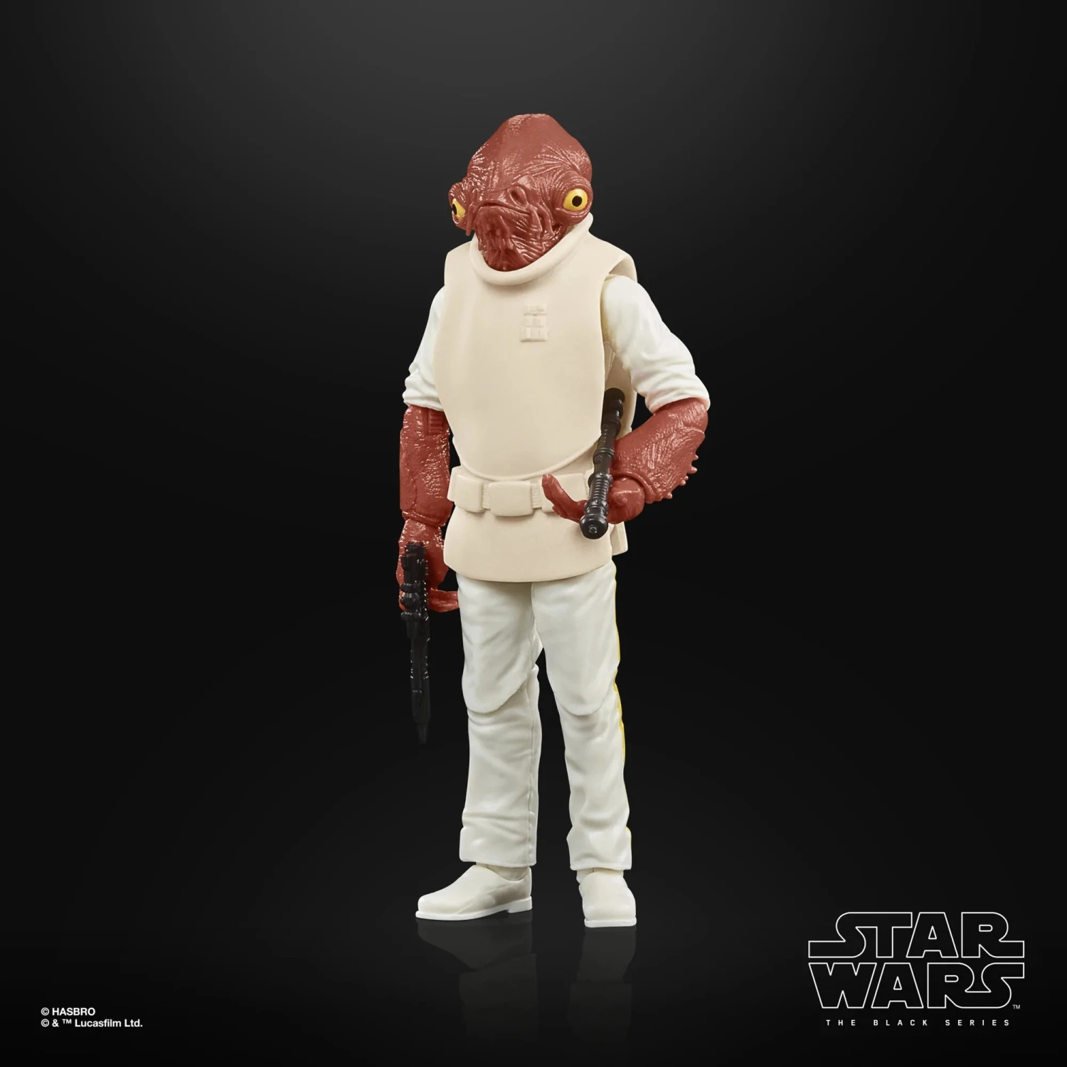 The 6-inch-scale Black Series figure is detailed to look like the Admiral Ackbar character from Star Wars: Return of the Jedi, featuring premium detail and multiple points of articulation.