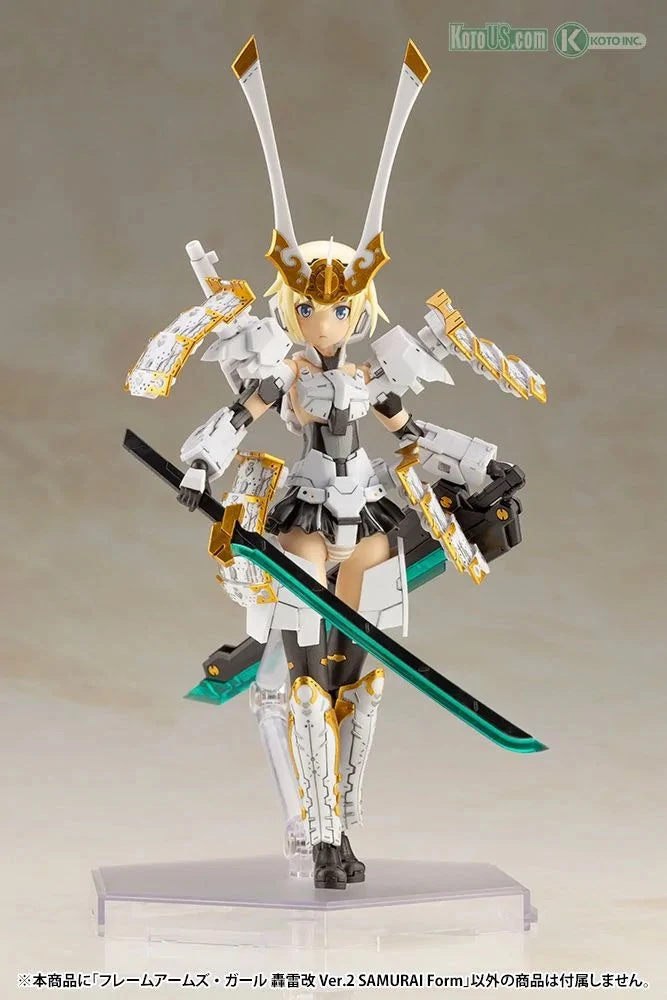Frame Arms Girl is a unique spin-off series that redesigns the robots of the original Frame Arms line as beautiful girls! The latest addition to the line is a new Gourai-kai Ver. 2 equipped with SAMURAI MASTER SWORD and EXPANSION ARMOR Type G!